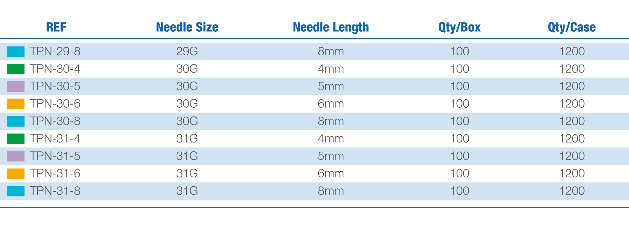 - Choice of needle length of 4mm, 5mm, 6mm and 8mm