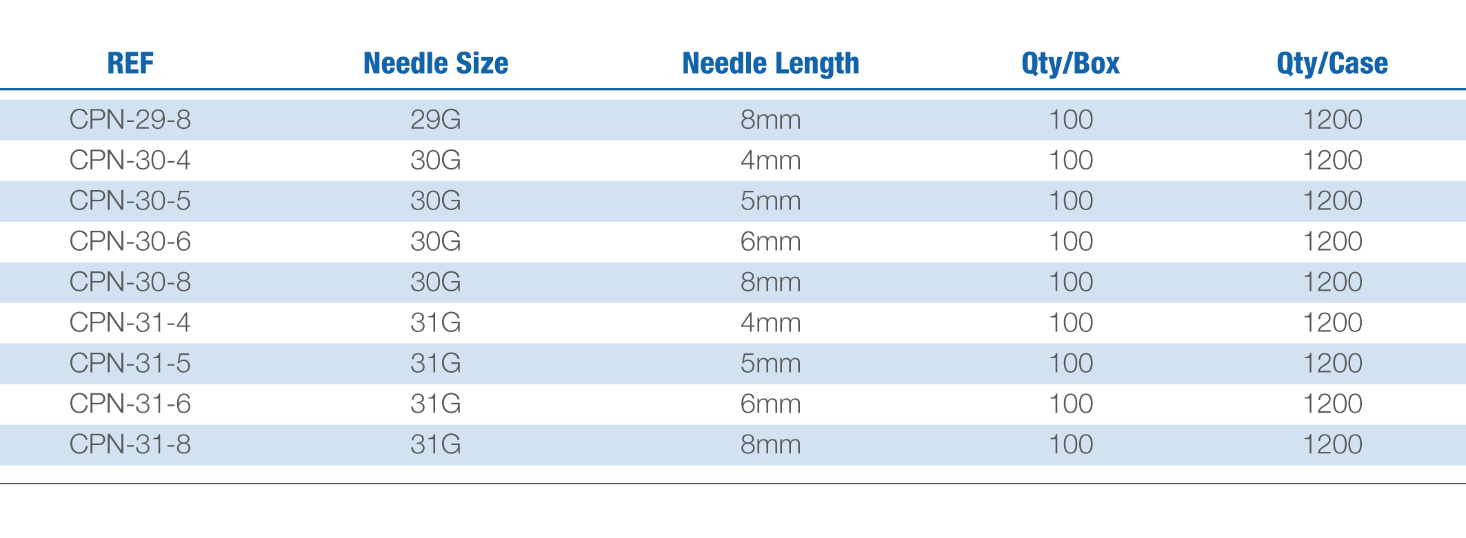 - Choice of needle gauge of 29G, 30G and 31G